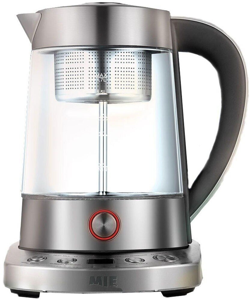 Type: kettle, case material: metal/glass, volume: 1.70 l, type of heating element: closed, additional functions: long boiling, keep warm, timer, features: 360 degree rotation, display, for