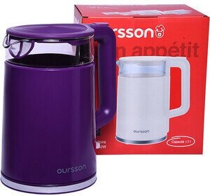 Type: kettle, body material: plastic/glass, volume: 1.70 l, type of heating element: closed, additional functions: keeping warm, features: 360 degree rotation, double walls, water level indicator, o