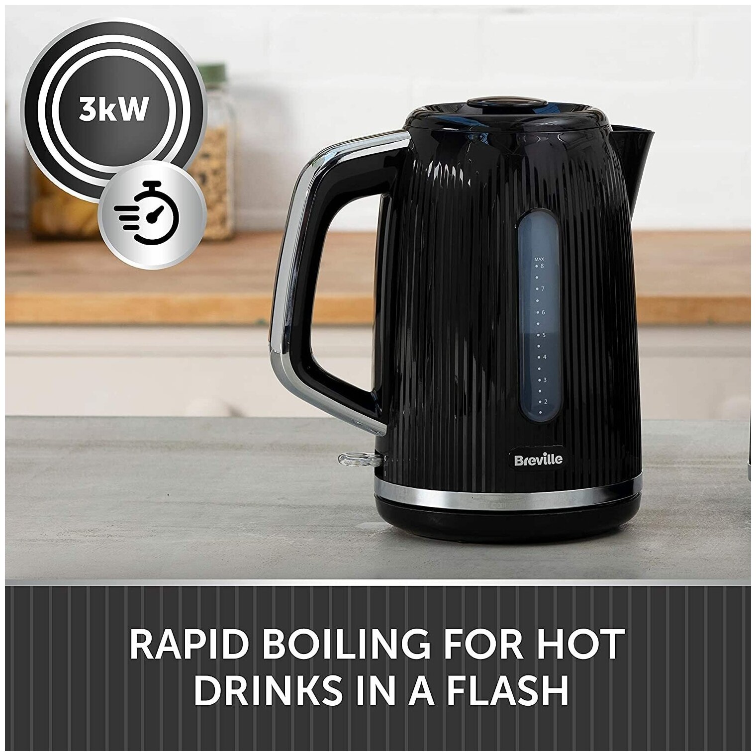 Breville Bold Black Electric Kettle | 1.7L | 3kW Fast Boil | Black & Silver Chrome VKT221, black