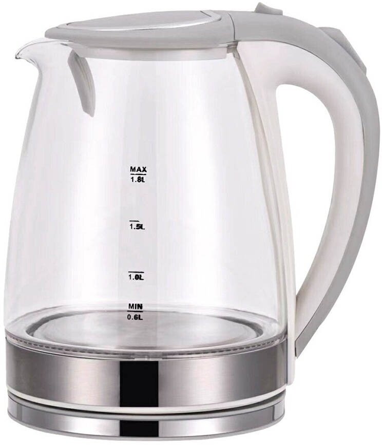 Type: kettle, body material: plastic/glass, volume: 1.80 l, type of heating element: closed, features: 360 degree rotation, water level indicator, power on indication, cord storage compartment