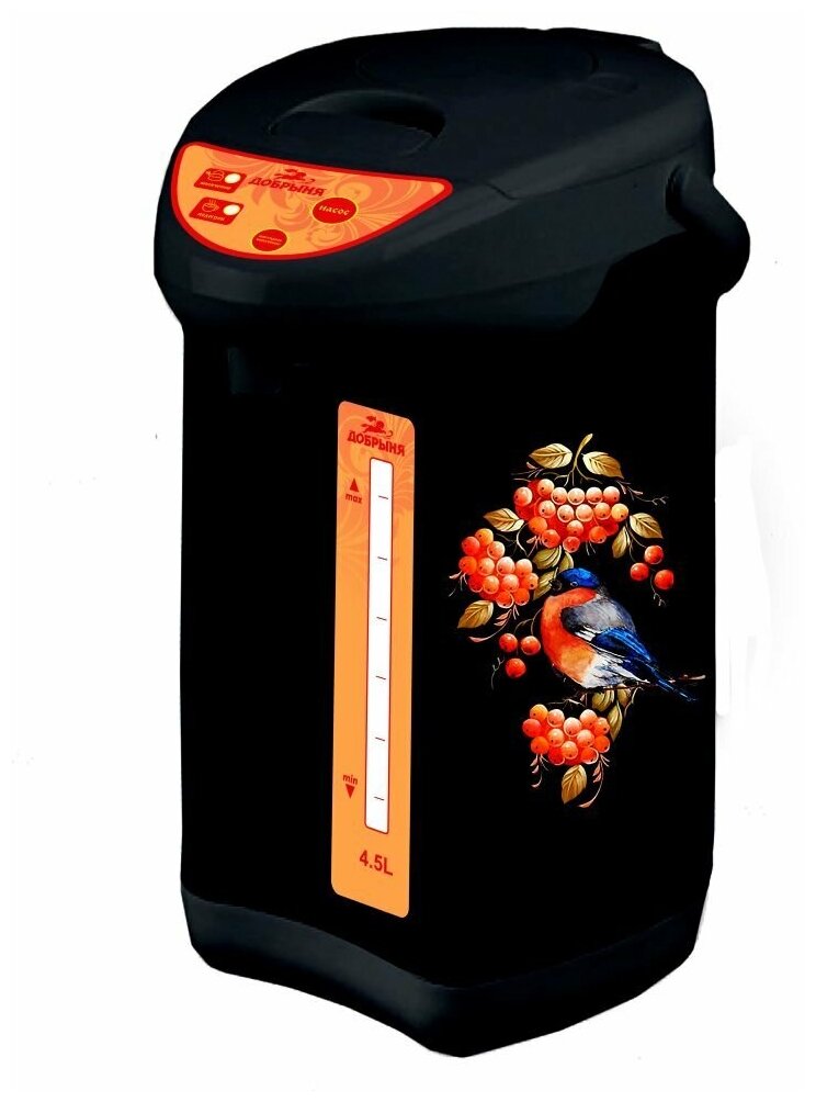 Type: thermopot, case material: metal/plastic, volume: 4.50 l, type of heating element: closed, additional functions: keep warm, features: double walls, water level indicator, picture on the case, eat