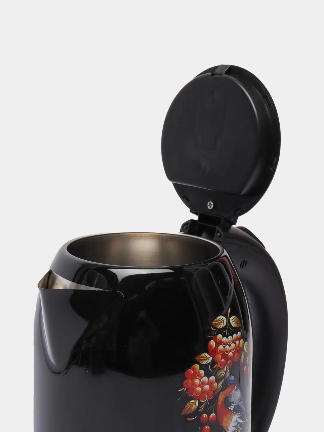 Type: kettle, case material: metal, volume: 2 l, type of heating element: closed, features: 360 degree rotation, on indication, cord storage compartment, pattern on the case