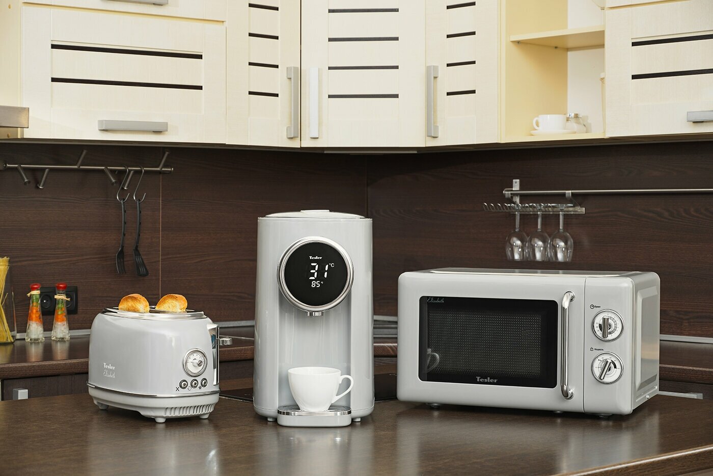 Child lock; operating modes auto-boiling, re-boiling, clean and tap water; sound signal