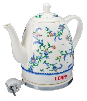 Type: teapot, body material: ceramics, volume: 1.50 l, type of heating element: closed, features: 360 degree rotation, pattern on the body, removable lid