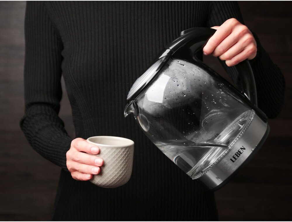 Type: kettle, body material: metal/glass, volume: 1.50 l, type of heating element: closed, features: 360 degree rotation, water level indicator, filter