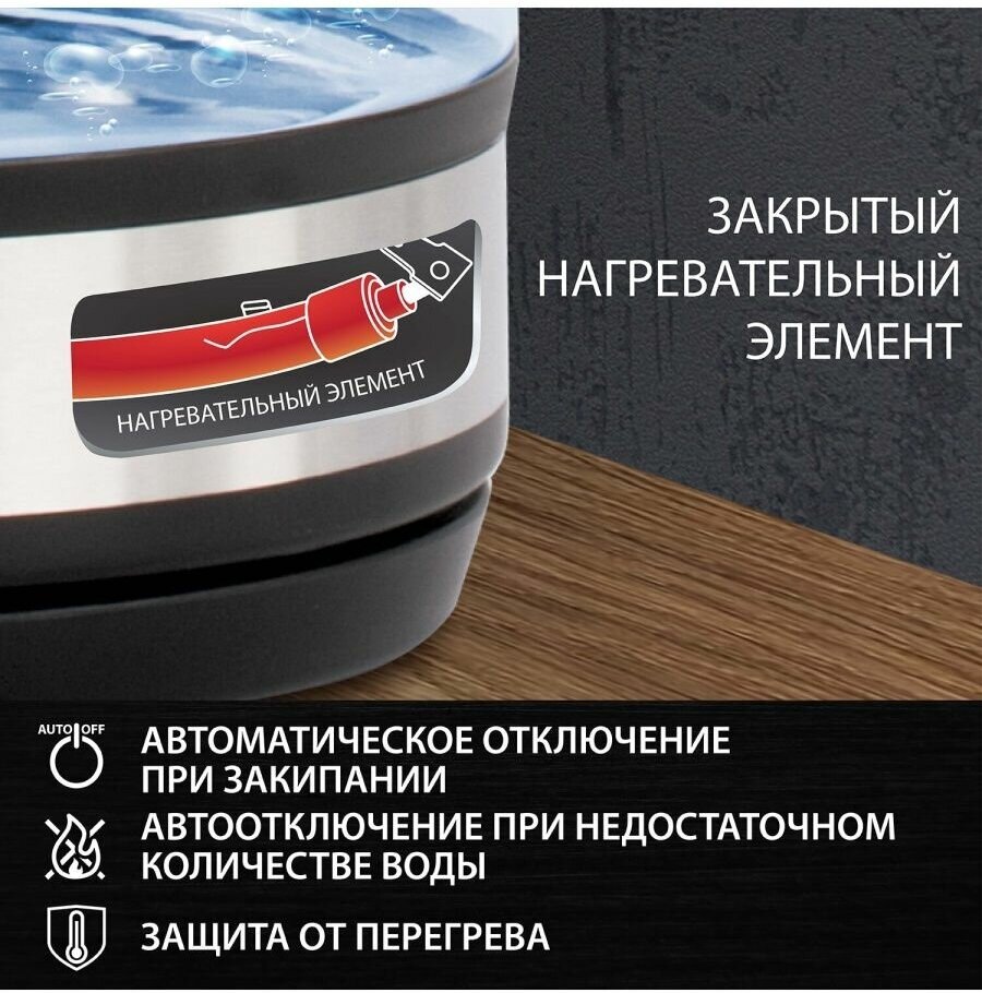 Type: kettle, case material: Glass, volume: 1.70 l, heating element type: closed, features: water level indicator