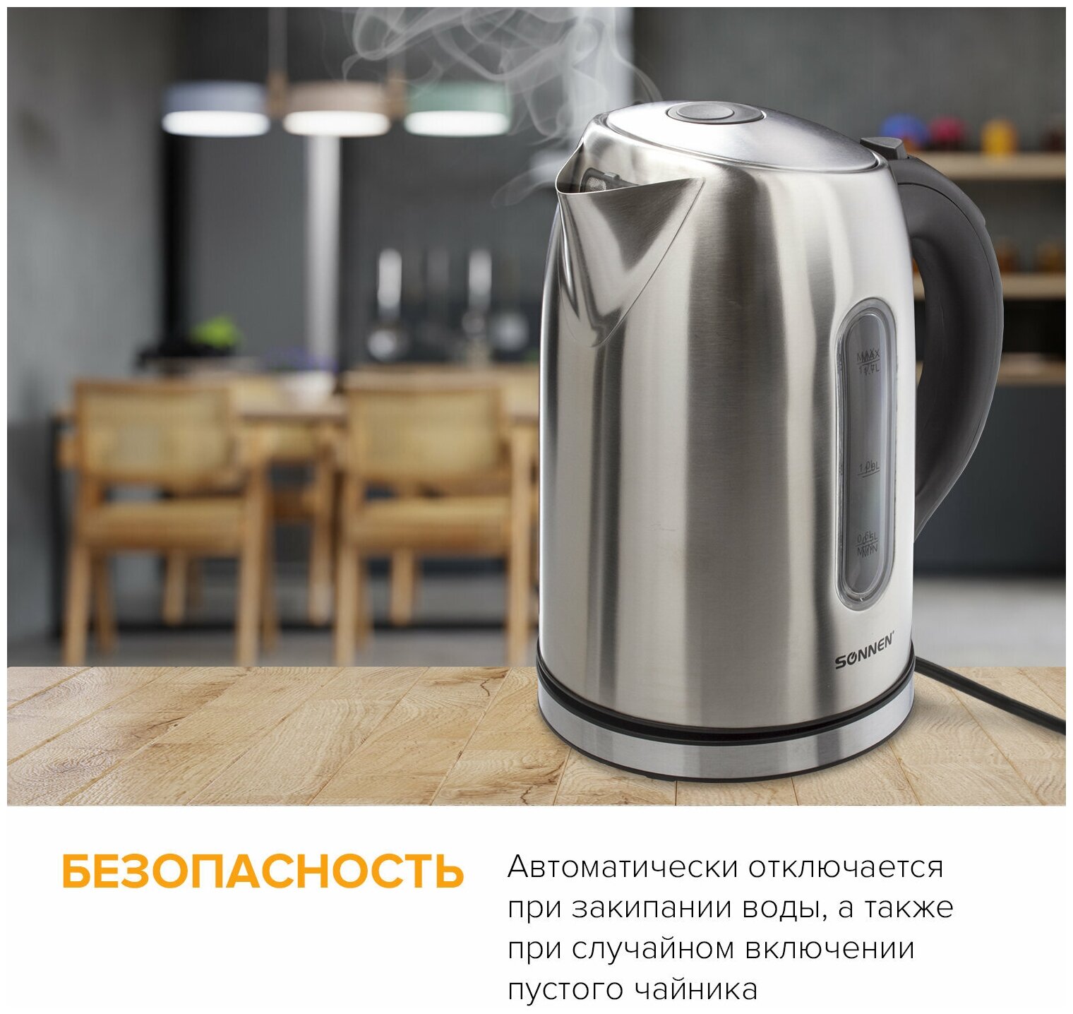 SONNEN KT-1740, 1.7 l, 2200 W, closed heating element, thermostat, stainless steel, 453421