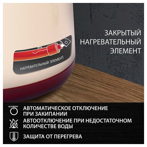 Type: teapot, body material: plastic, volume: 1.70 l, type of heating element: closed, features: 360 degree rotation, water level indicator, on indication, filter
