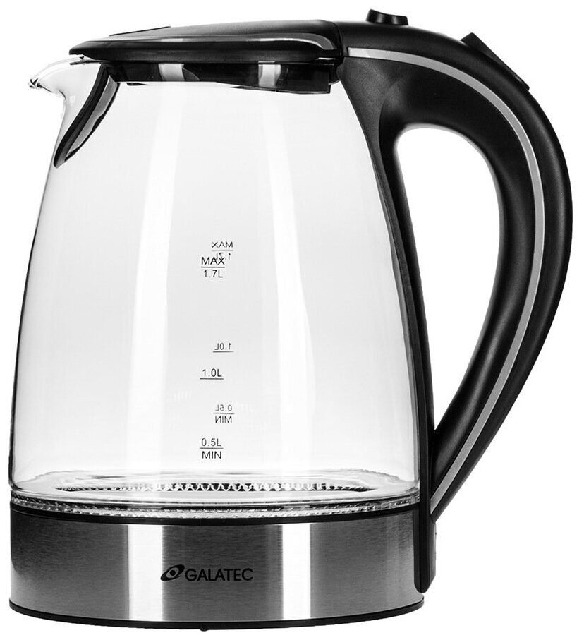 Type: kettle, body material: metal/glass, volume: 1.70 l, type of heating element: closed, features: 360 degree rotation, water level indicator, filter