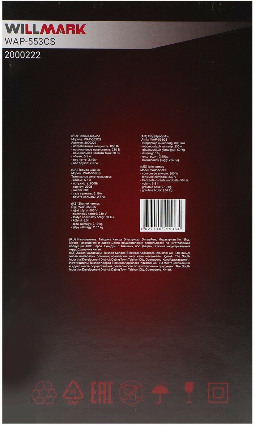 Type: thermopot, case material: metal/plastic, volume: 5.50 l, type of heating element: closed, additional functions: keeping warm, features: maintaining a constant temperature