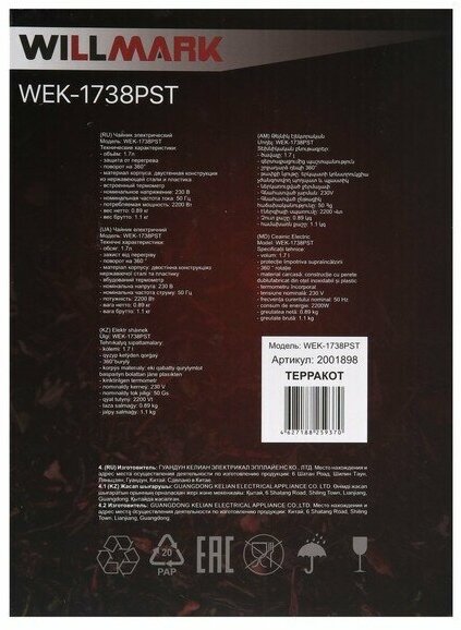 Electric kettle WILLMARK WEK-1738PST 1.7l, double walls, thermos effect, thermometer, 2200W