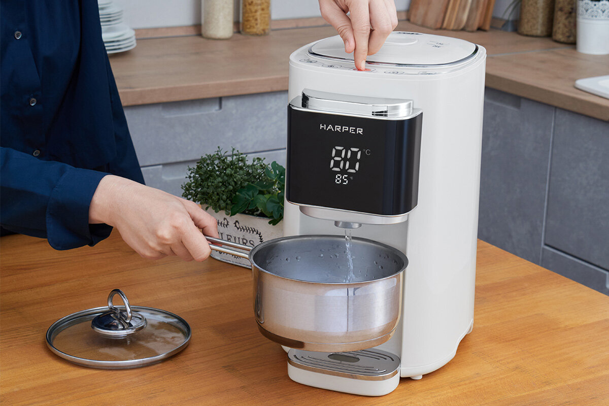 Type: thermopot, body material: plastic, volume: 5 l, type of heating element: closed, additional functions: keeping warm, features: double walls, display, on indication, touch control,