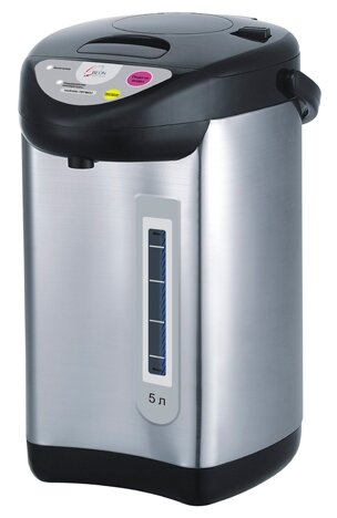 Type: thermo pot, volume: 5 l, type of heating element: closed, additional functions: long boiling, keeping warm, features: double walls, water level indicator, removable cover