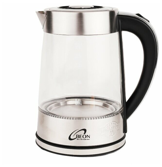 Type: kettle, case material: metal/glass, volume: 2 l, type of heating element: closed, features: water level indicator, removable lid