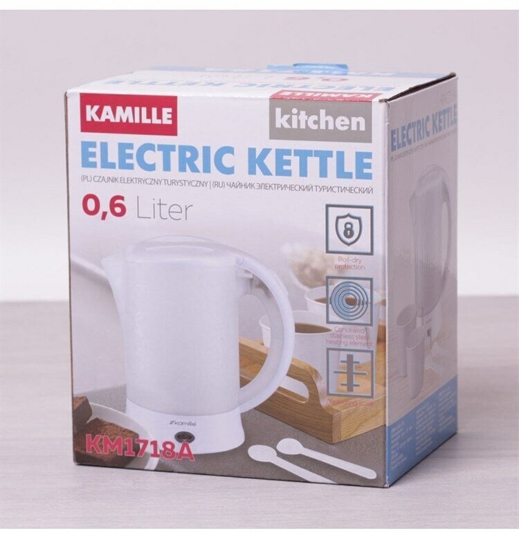 Type: kettle, body material: plastic, volume: 0.60 l, heating element type: closed