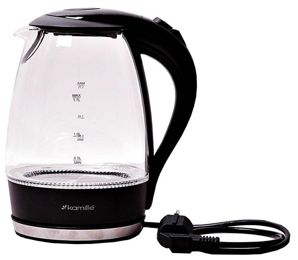 Type: kettle, body material: plastic/glass, volume: 1.70 l, type of heating element: closed, features: 360 degree rotation, water level indicator, cord storage compartment, filter