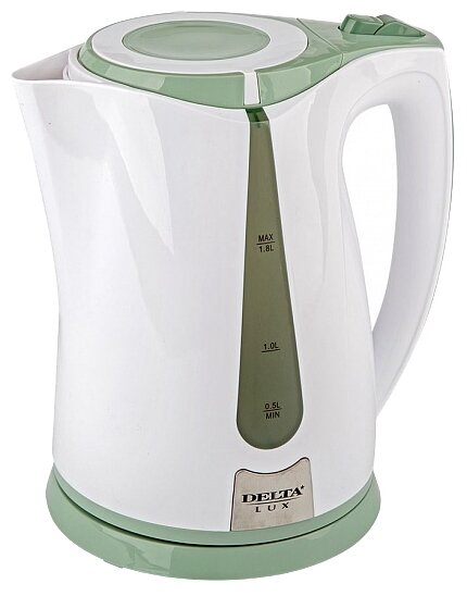 Type: kettle, body material: plastic, volume: 1.80 l, heating element type: closed, features: 360 degree rotation, water level indicator, cord storage compartment