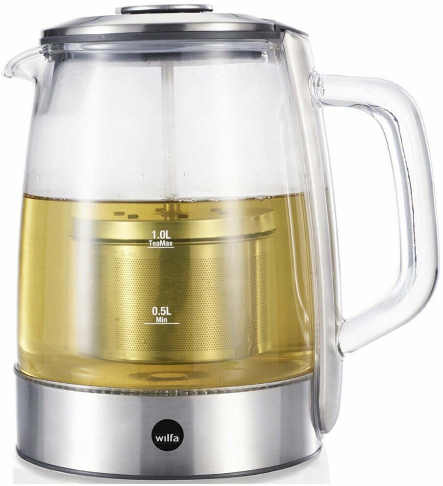 Description: Type: kettle, case material: metal/glass, volume: 1.25 l, type of heating element: closed, additional functions: keeping warm, features: 360 degree rotation, water level indicator, indication on
