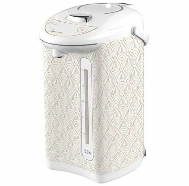 Type: thermopot, body material: metal, volume: 5 l, type of heating element: closed, additional functions: keeping warm, features: 360 degree rotation, double walls, water level indicator, indication