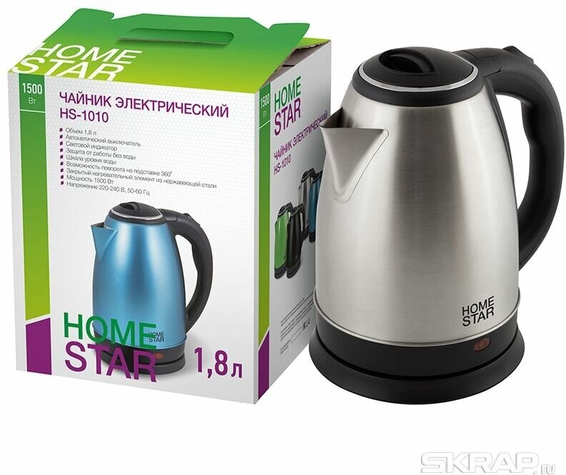 Type: kettle, case material: metal, volume: 1.80 l, type of heating element: closed, features: 360 degree rotation, water level indicator, power on indication, cord storage compartment, yes