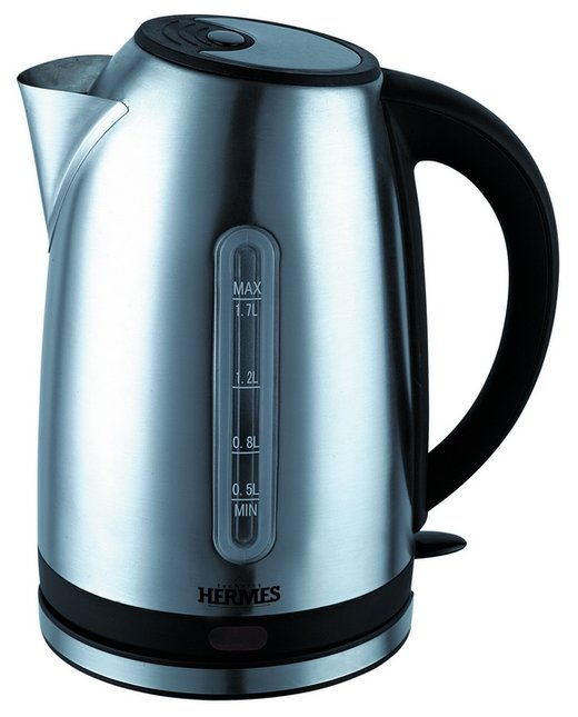 Type: kettle, body material: metal, volume: 1.70 l, type of heating element: closed, features: 360 degree rotation, water level indicator, cord storage compartment, filter