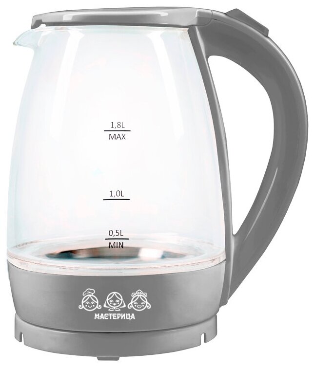 Type: kettle, body material: plastic/glass, volume: 1.80 l, heating element type: closed, features: 360 degree rotation, water level indicator, cord storage compartment