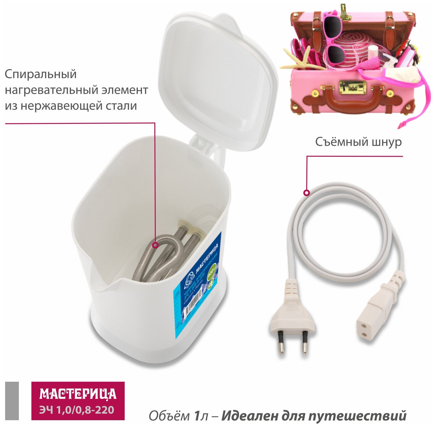 Electric ECH-1.0/0.8-220B, plastic, white, 1l, 500W