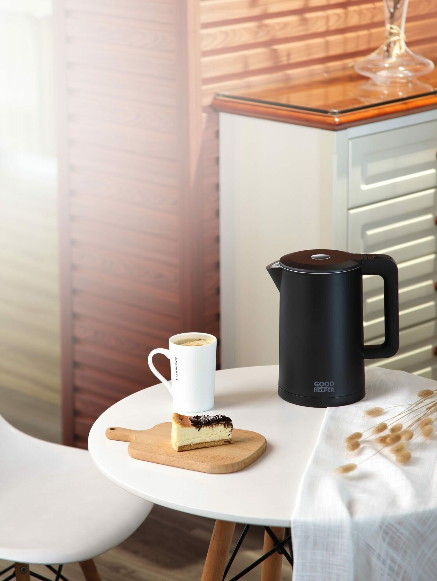 Type: kettle, body material: metal/plastic, volume: 1.80 l, type of heating element: closed, additional functions: keeping warm, features: 360 degree rotation, double walls, filter