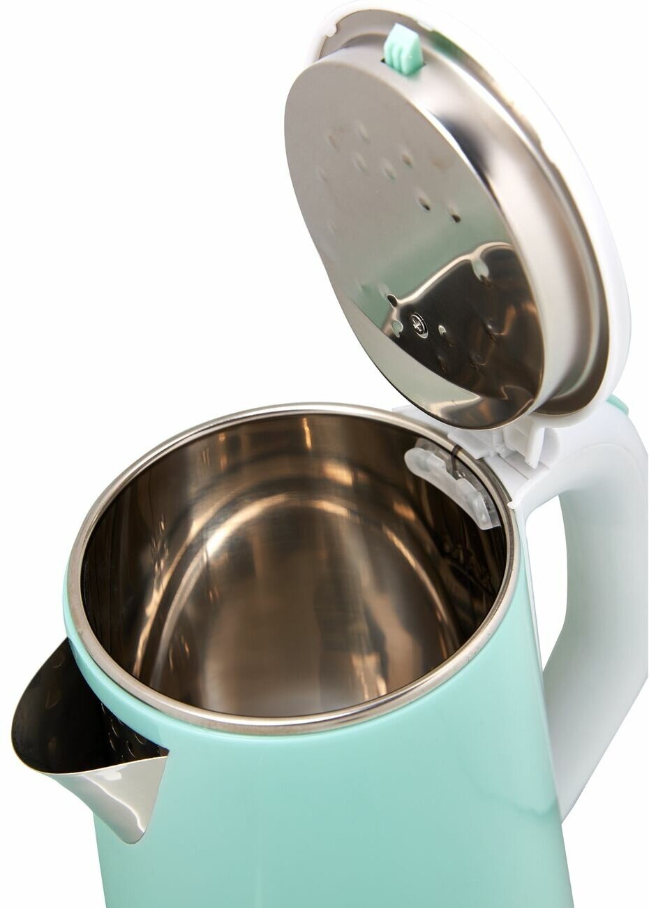 Type: kettle, body material: metal/plastic, volume: 1.80 l, type of heating element: closed, additional functions: keeping warm, features: 360 degree rotation, double walls, filter