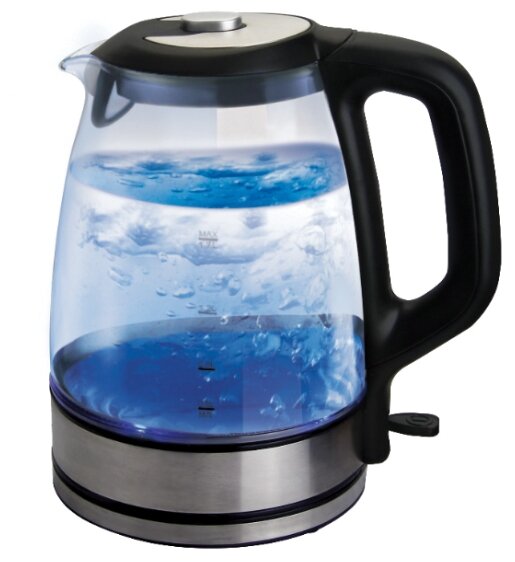 Type: kettle, body material: metal/glass, volume: 1.80 l, type of heating element: closed, features: 360 degree rotation, water level indicator, filter