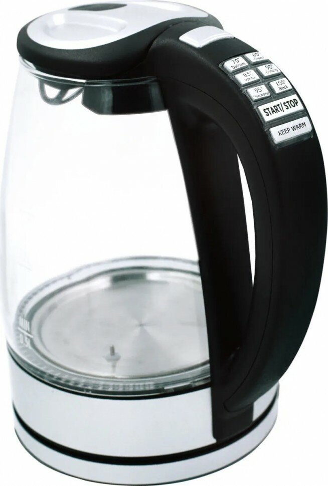 Type: kettle, body material: plastic/glass, volume: 1.70 l, type of heating element: closed, additional functions: keeping warm, features: 360 degree rotation, water level indicator, filter