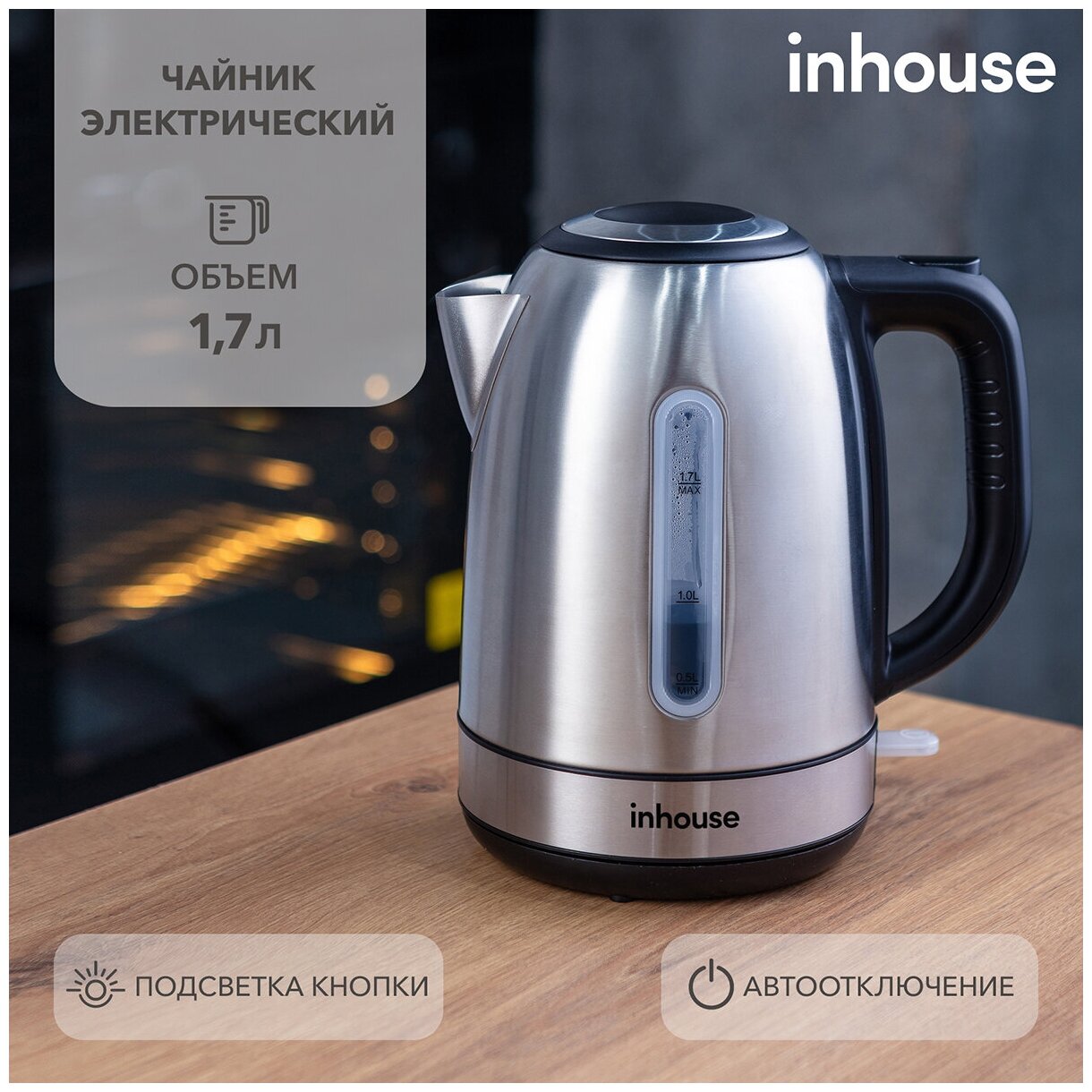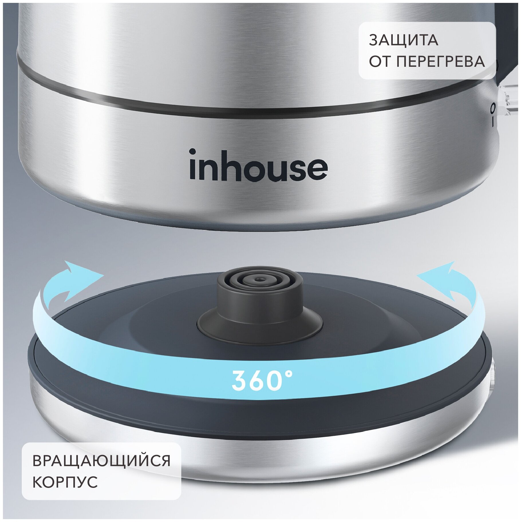 Type: teapot, case material: metal, volume: 1.70 l, type of heating element: closed, additional functions: auto-off when boiling, protection against turning on, features: 360-degree rotation, double walls,