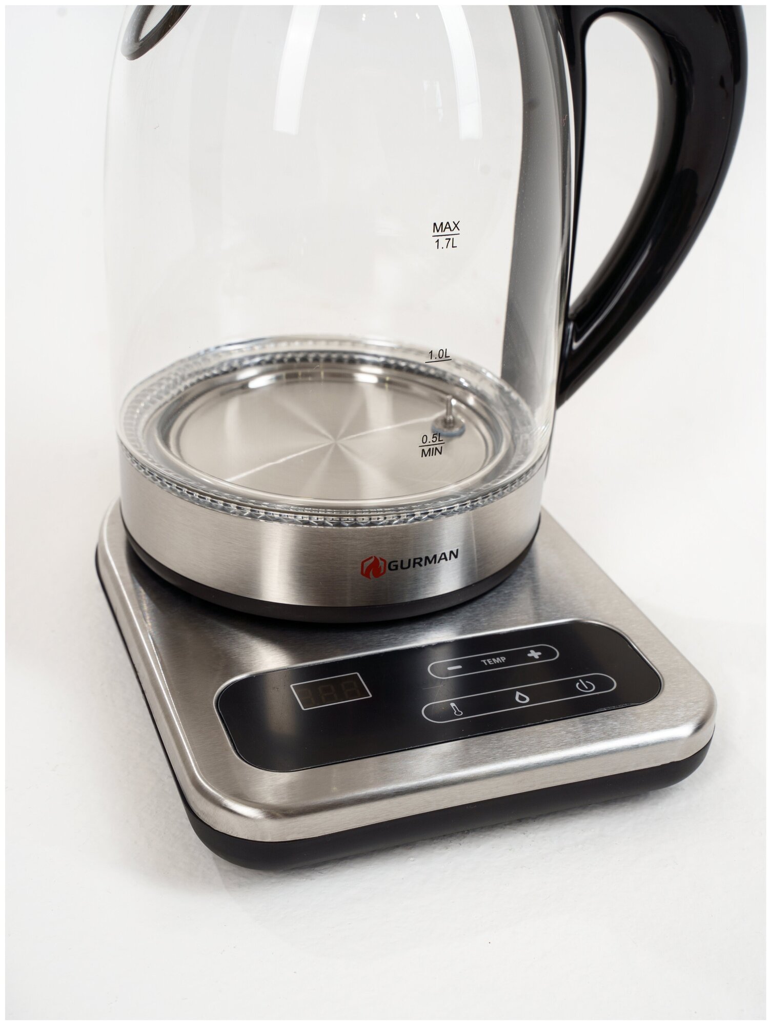 Type: kettle, case material: metal/glass, volume: 1.70 l, heating element type: closed, additional functions: keep warm