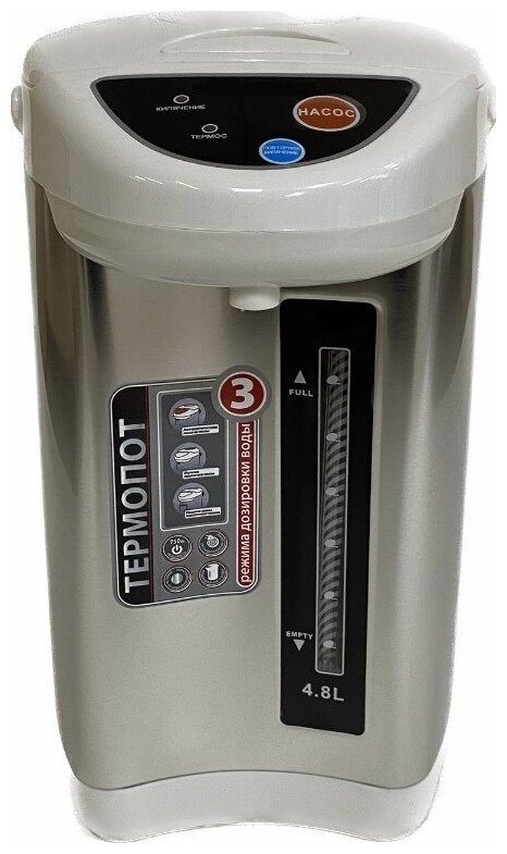 Type: thermopot, case material: metal/plastic, volume: 4.80 l, type of heating element: closed, additional functions: keeping warm, features: 360 degree rotation, water level indicator