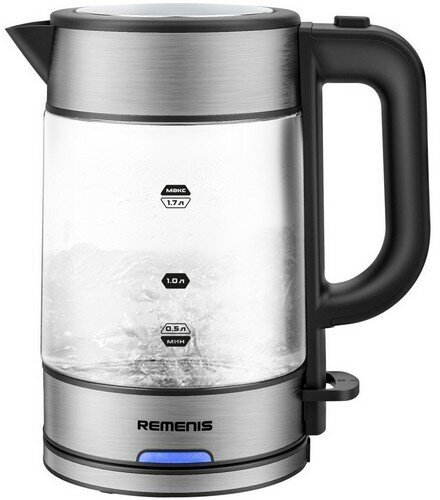 Description: Type: teapot, case material: metal/glass, volume: 1.70 l, type of heating element: closed, features: 360 degree rotation, water level indicator, on indication, filter