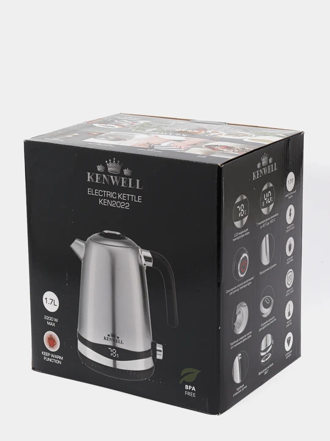 Description: Type: teapot, case material: metal, volume: 1.70 l, type of heating element: closed, additional functions: keep warm, features: display, water level indicator, on indication, storage compartment