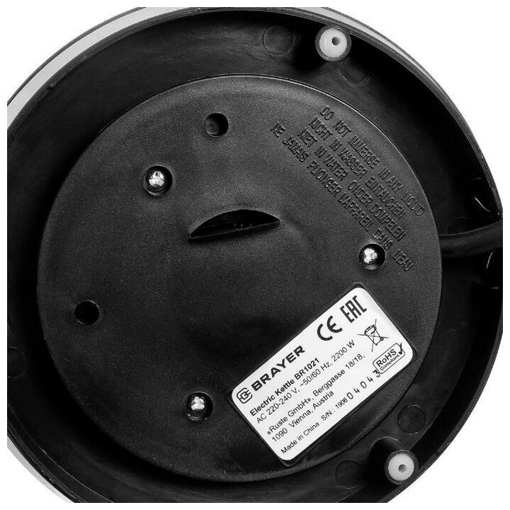 Type: kettle, body material: plastic/glass, volume: 1.70 l, type of heating element: closed, additional functions: keeping warm, features: 360 degree rotation, brewing filter, water level indicator