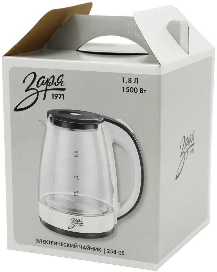 Description: Type: kettle, body material: plastic/glass, volume: 1.80 l, type of heating element: closed, features: 360 degree rotation, water level indicator, power on indication, filter