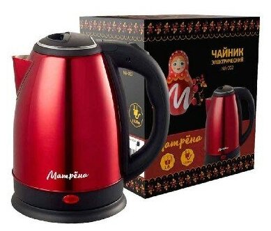 Type: kettle, case material: metal, volume: 1.80 l, type of heating element: closed, features: 360 degree rotation, water level indicator, power on indication, filter