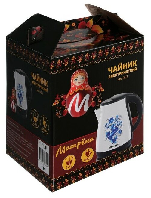 Kettle electric MATRYONA MA-003 1,7l stainless steel white Gzhel