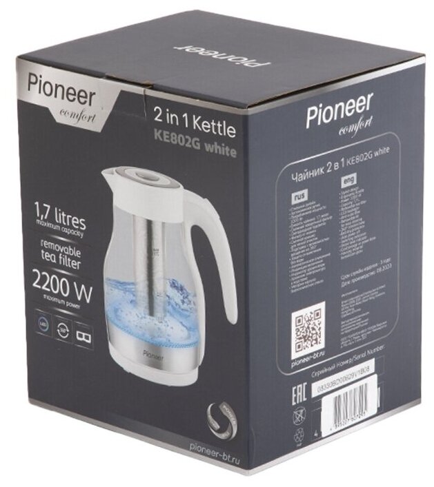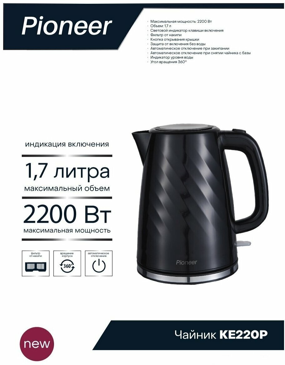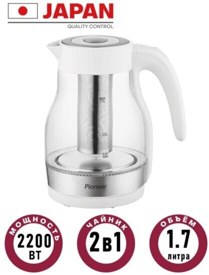 Type: kettle, body material: plastic/glass, volume: 1.70 l, type of heating element: closed, features: 360 degree rotation, brewing filter, water level indicator, cord storage compartment, removable lid,