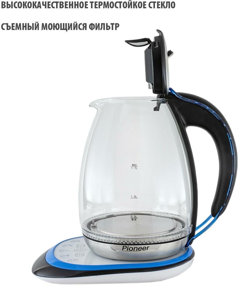 Type: kettle, body material: plastic/glass, volume: 1.70 l, type of heating element: closed, features: 360 degree rotation, water level indicator, on indication, touch control