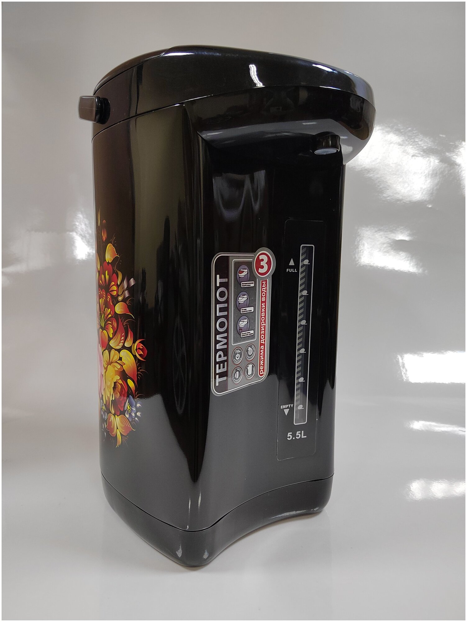 Type: thermopot, body material: metal/plastic, volume: 4.50 l, type of heating element: closed, additional functions: keeping warm, features: double walls