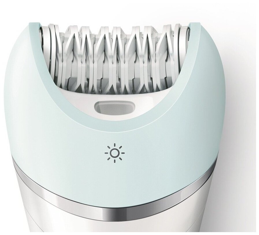 Type: epilator, power supply: battery, application area: bikini area, underarms, body, additional functions: use with foam, light, styling in the bikini area, attachments: nozzle-cut