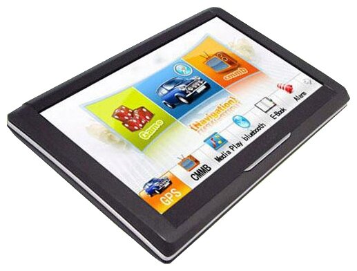 Type: portable, application area: automotive, screen diagonal: 7, operating system: Windows CE 6.0, wireless communication: Bluetooth, display: LCD-color, touchscreen, functions: map loading, memory card slot: micro SD, connectors and interfaces: AV input