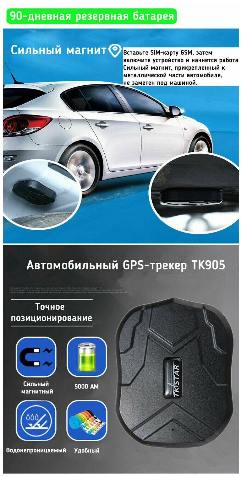 Purpose: automobile, bicycle, motorcycle, free real-time tracking, dual-mode GSM/GPS positioning, location determination: GPS, GSM, GLONASS, built-in battery/electric