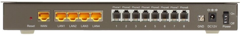 Network type: FXS, Number of FXS ports for phones: 8, Number of LAN ports: 4, VoIP protocols: SIP, features: expandable, router