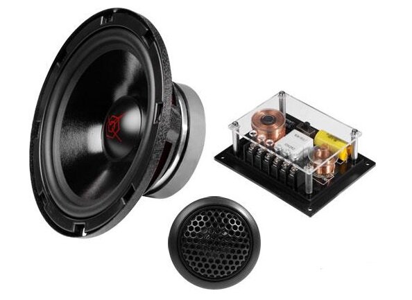 Woofer loudspeaker 2 pcs., high-frequency loudspeaker 2 pcs., crossover 2 pcs., protective wall 2 pcs., woofer loudspeaker mounting kit, high-frequency loudspeaker mounting kit, instructions