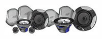 Resistance 4 ohms. Cast aluminum diffuser holder. LF diffuser material: aluminum. The woofer suspension is rubber. Midrange diffuser material: aluminum. HF diffuser: reverse aluminum dome with rubber surround. Magnet LF/MF/V