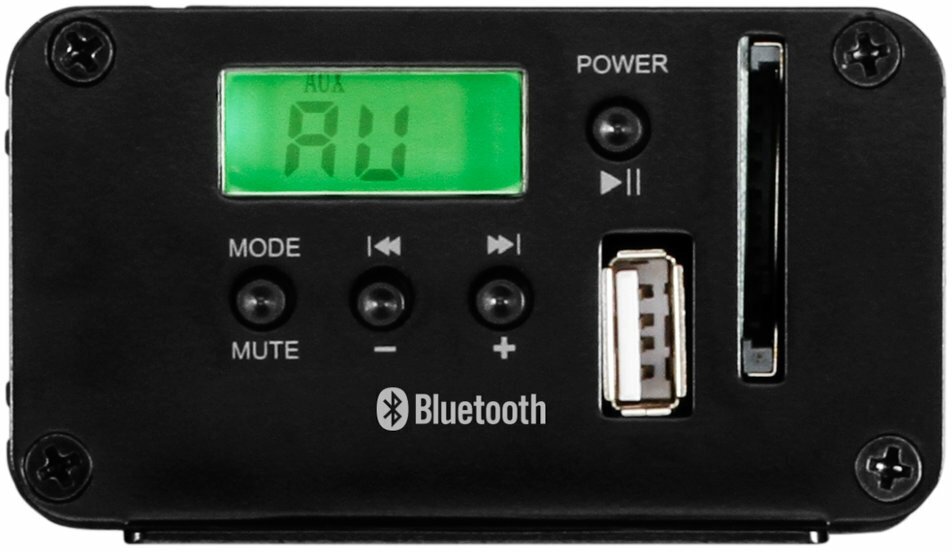 FM, USB, SD, Bluetooth, 3.5 mm jack Aux